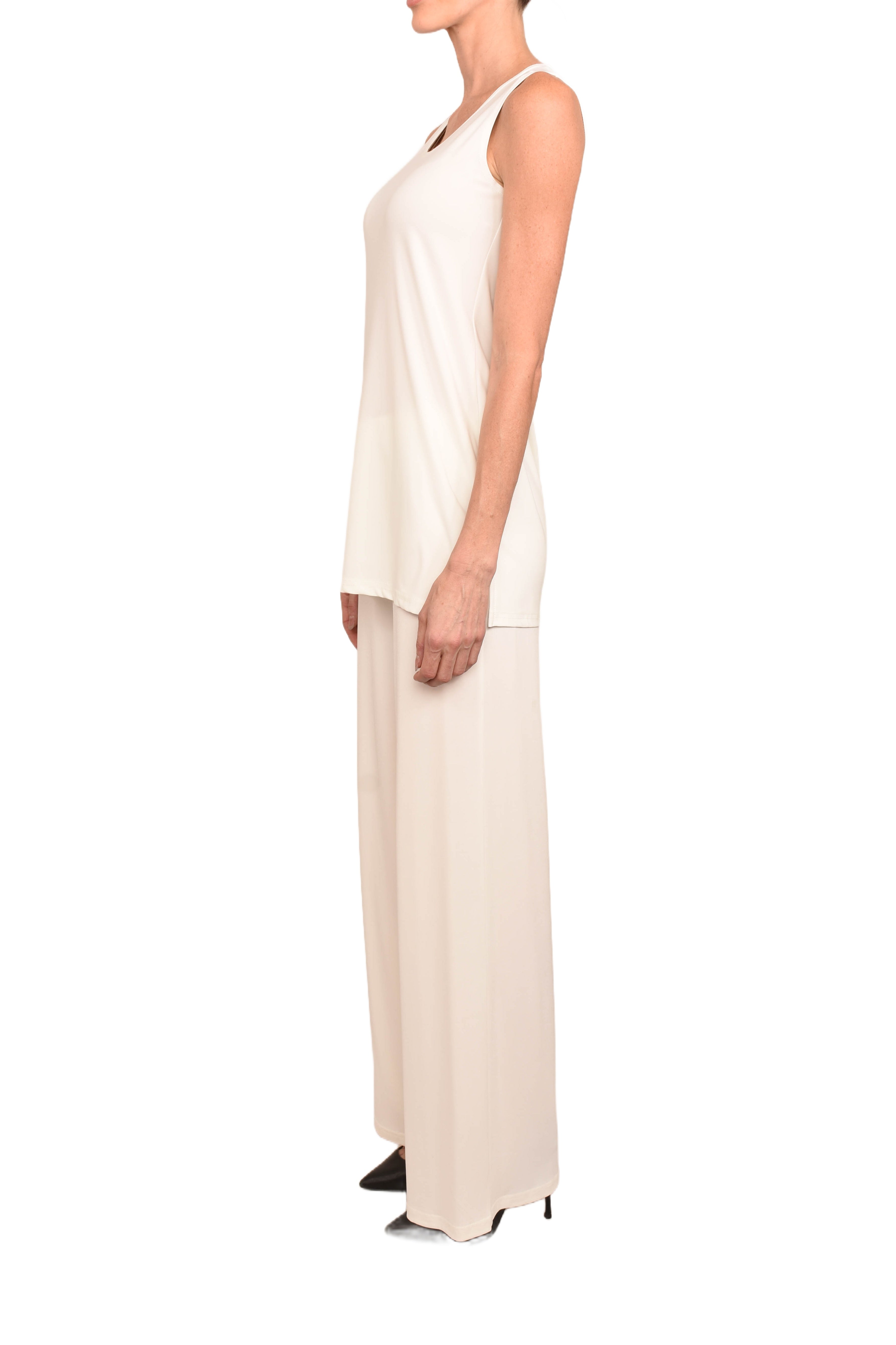Basic camisole wide straps, slits on the sides .Made in Canada . 95% Polyester 5% Spandex.