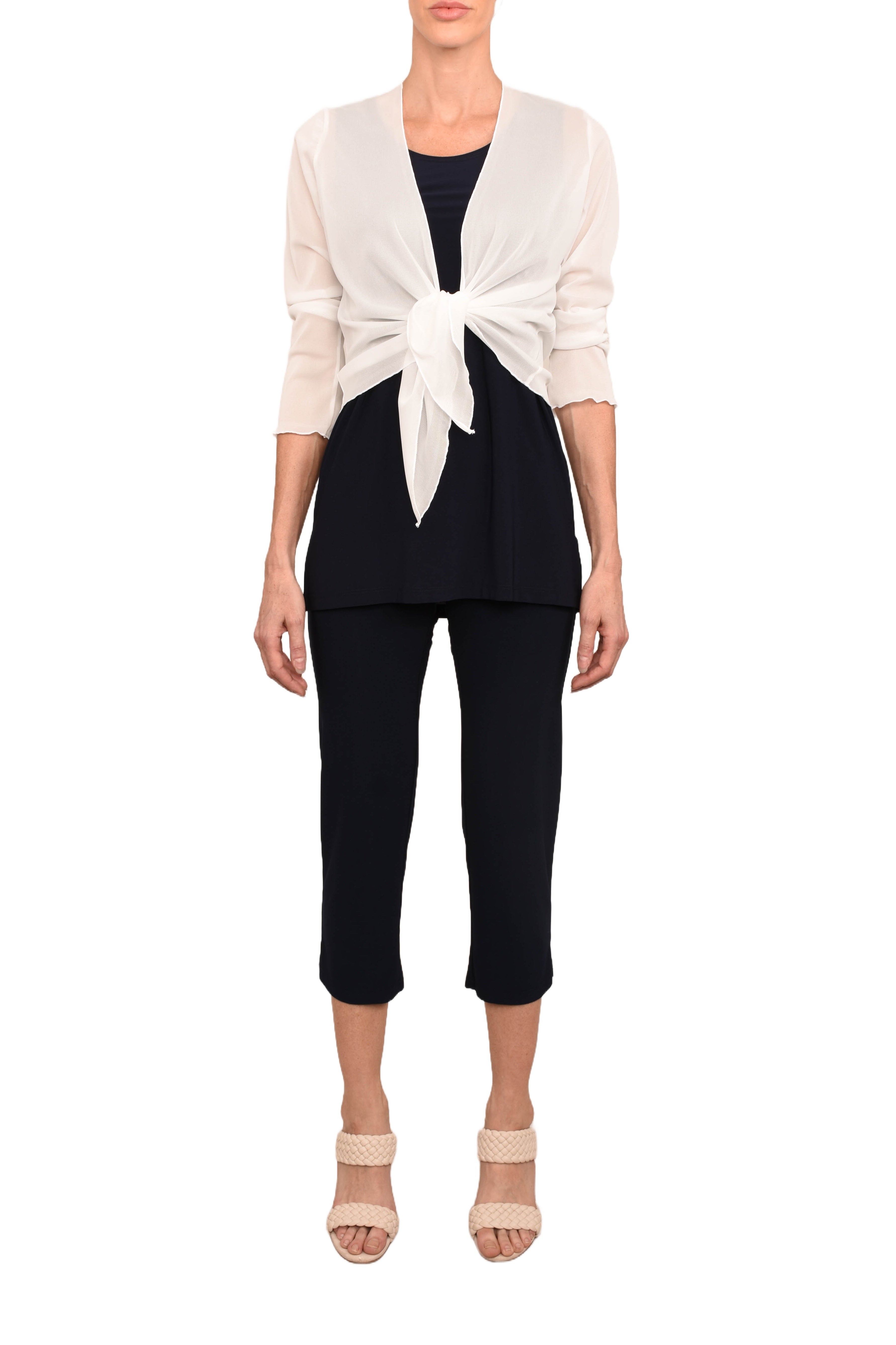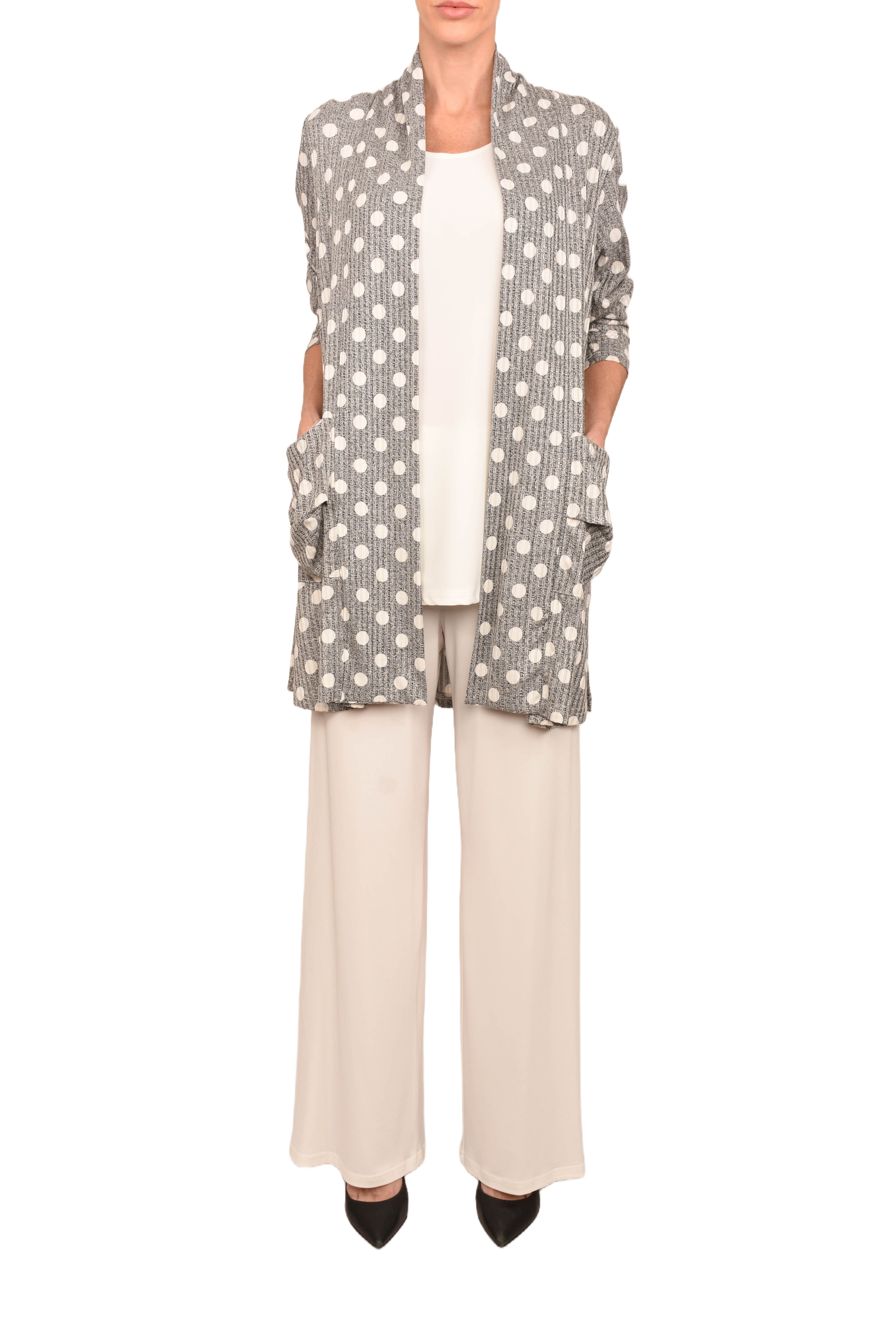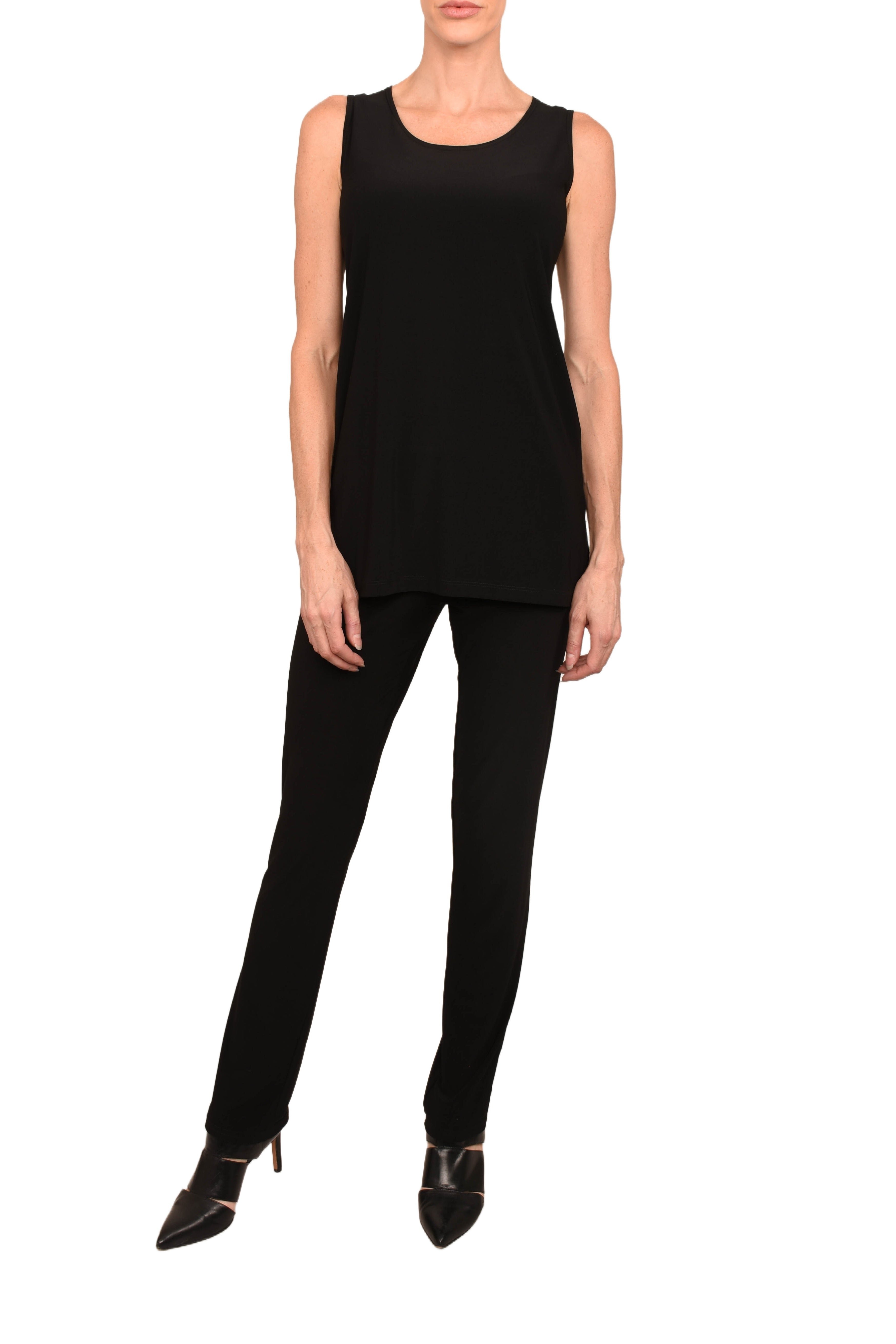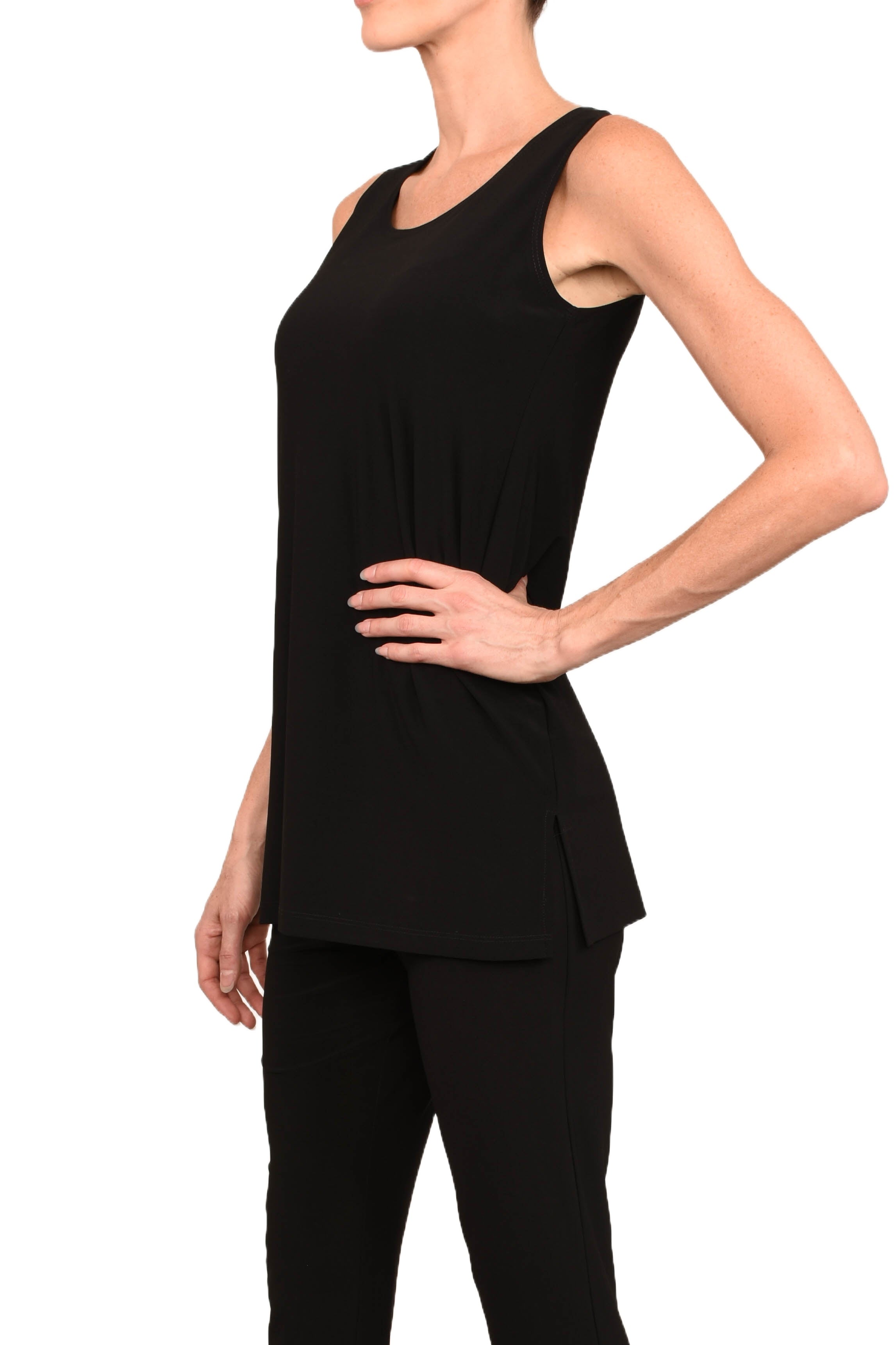 Camisole wide straps, longer version with slits .Made in Canada.95% Polyester 5% Spandex.