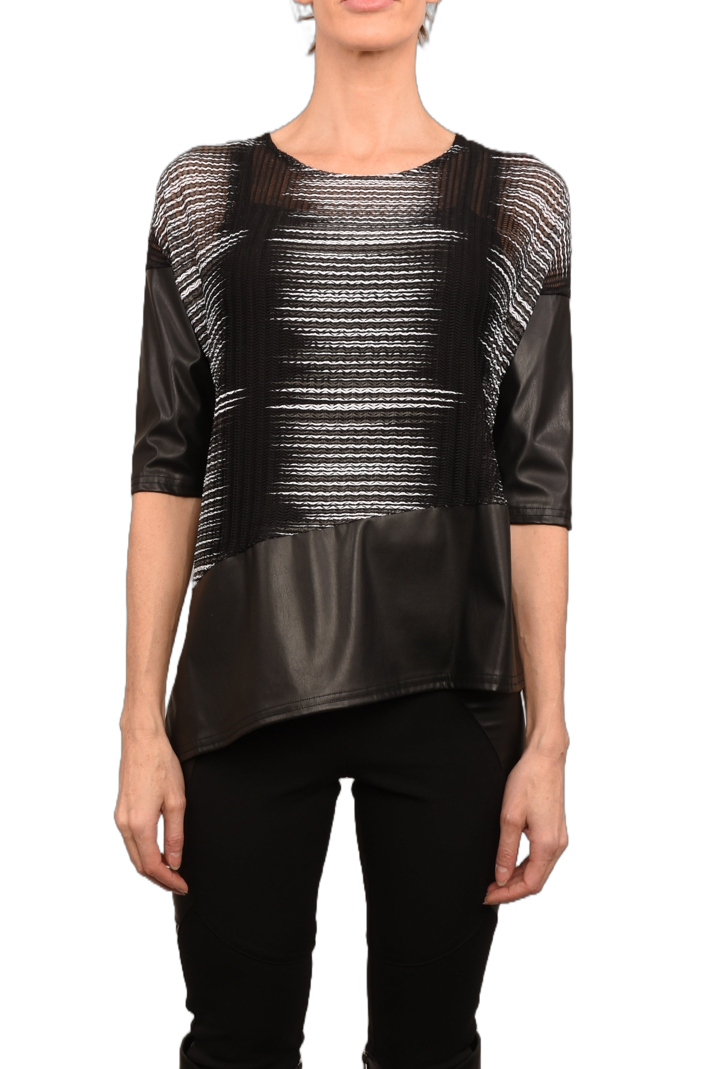 TN8624 - Haut asymétrique découpes en cuirette ,95% polyester 5% spandex. Lavable. Fait au Canada.